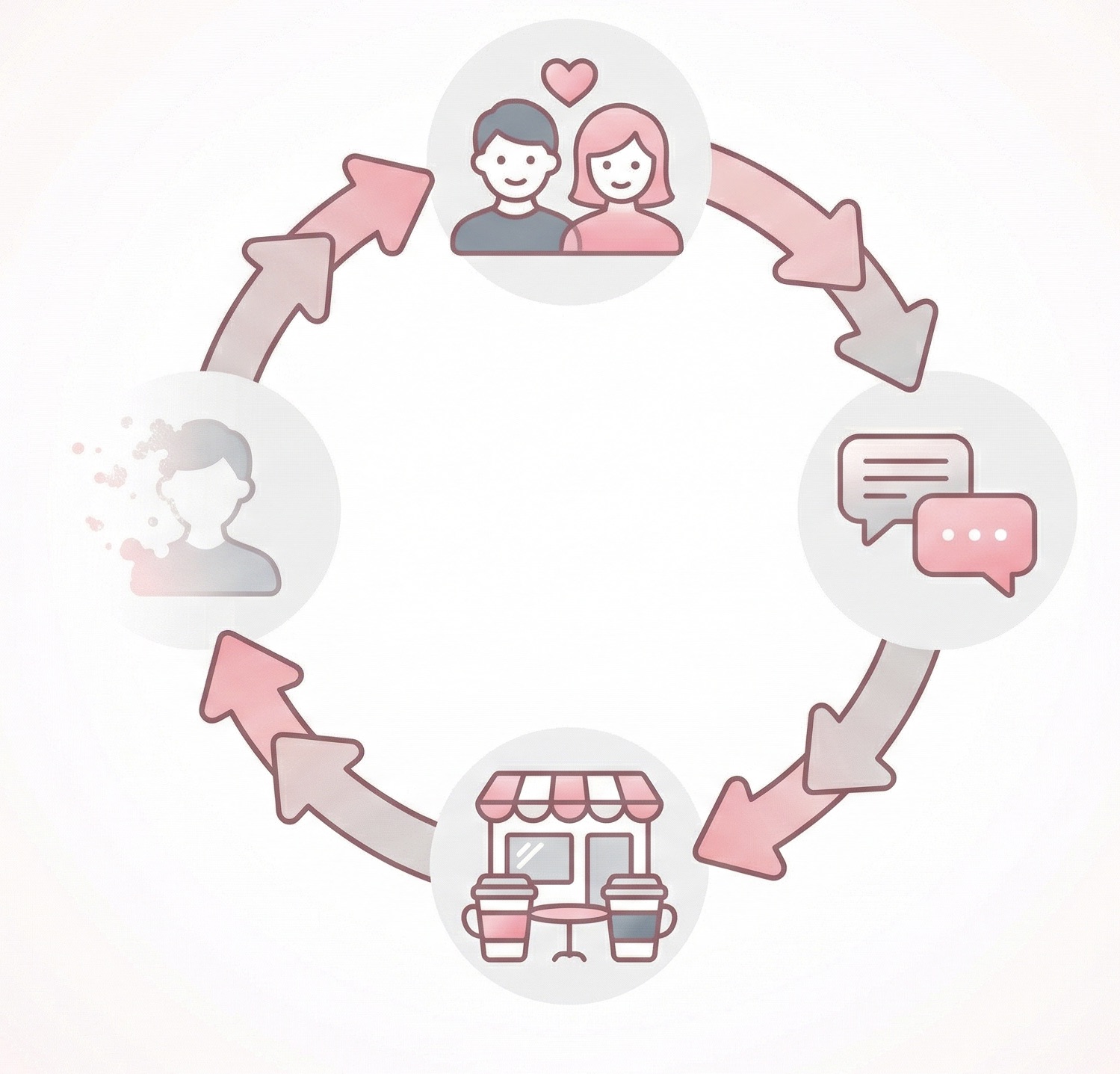出会い → やり取り → 会う → フェードアウト